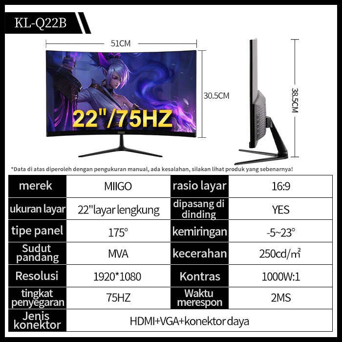 Kelengkapan monitor : Adaptor , Kabel Power , Kabel HDMI