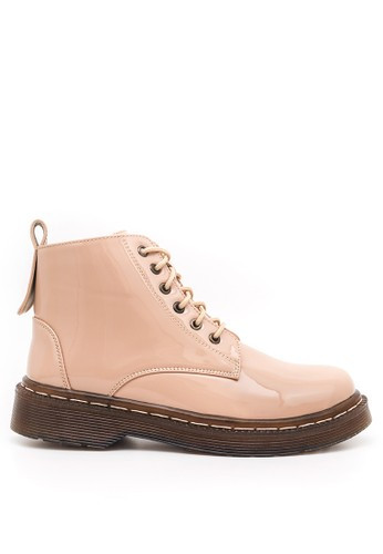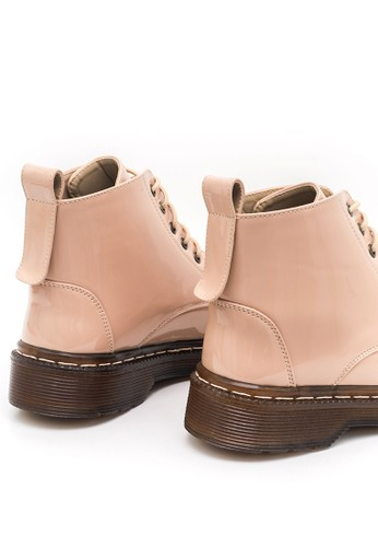 - Sepatu boot model simple dengan glossy finish untuk chic and masculin look