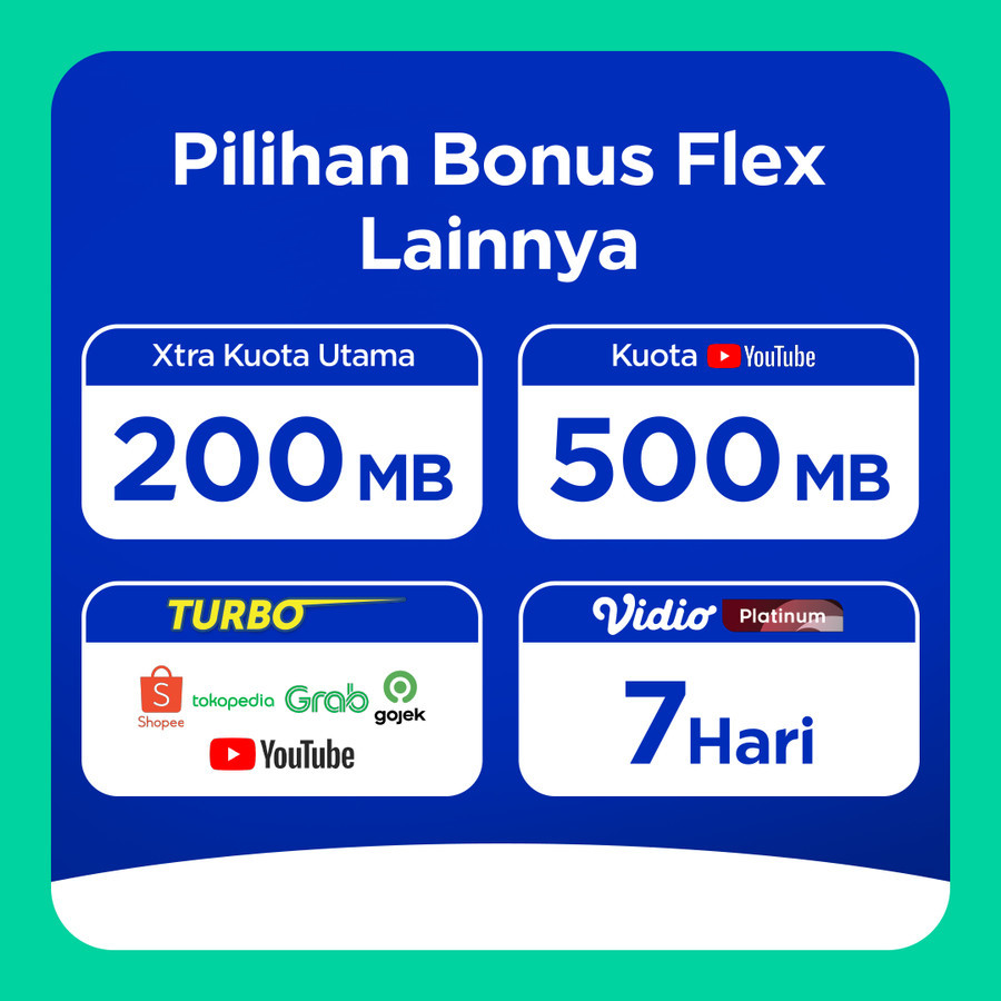 - Bonus Flex Kuota Utama dapat langsung digunakan dengan masa aktif mengikuti paket utama