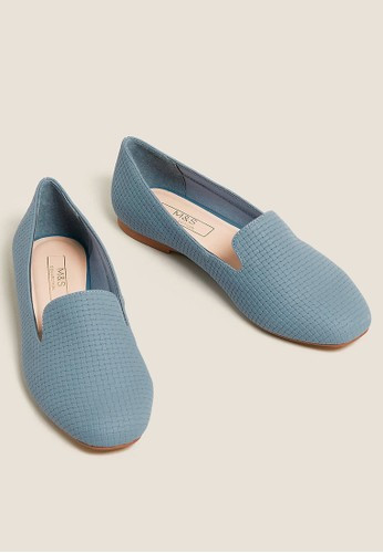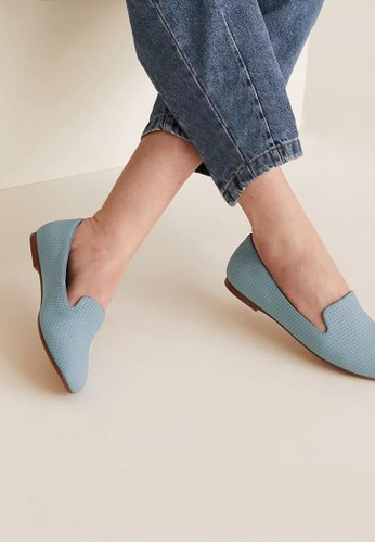 - Sepatu flat bertekstur woven dengan kesan