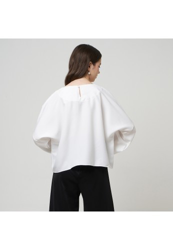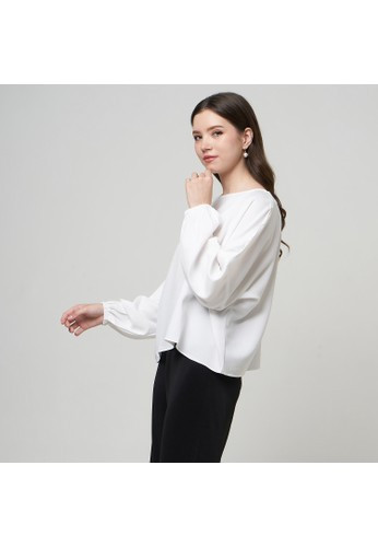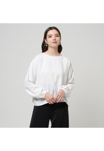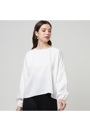 Blouse polos oversize dengan lengan panjang dan model crop.