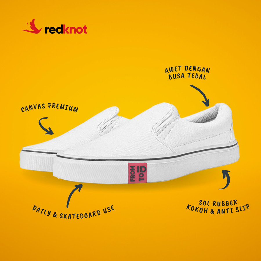 Yes kita akhirnya buat sepatu slip on dengan model terkini. Redknot Triple yang udah kalian tunggu-tunggu akhirnya datang juga. Cocok banget buat kamu yang males banget ikat tali sepatu lagi. Tinggal flop dan langsung Go !!