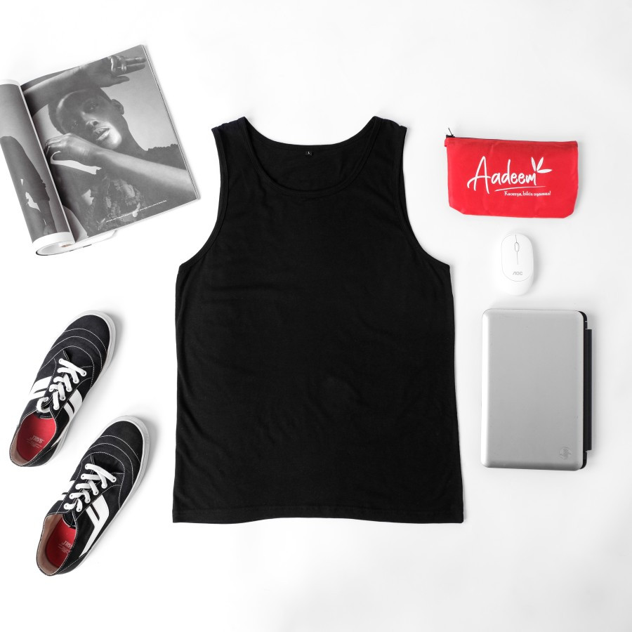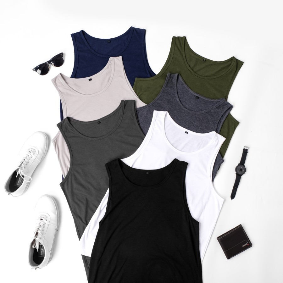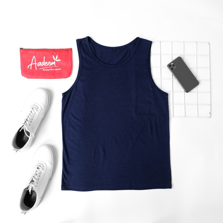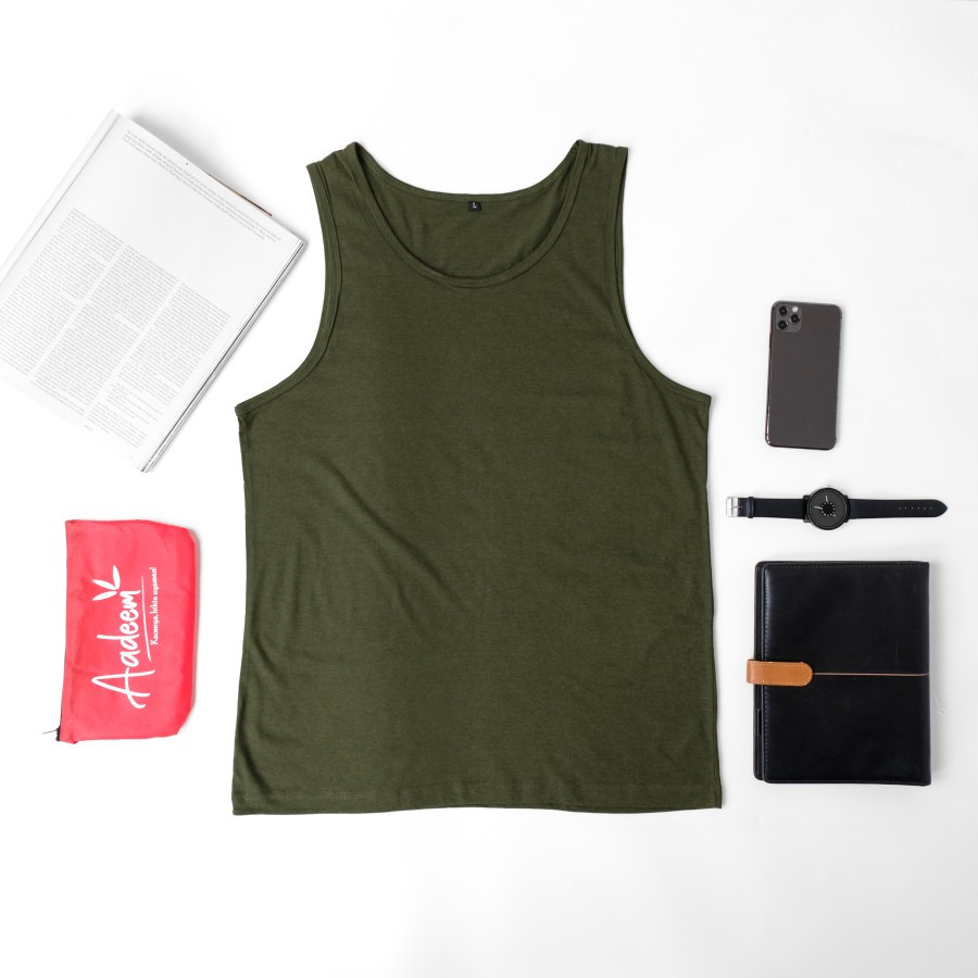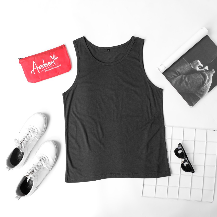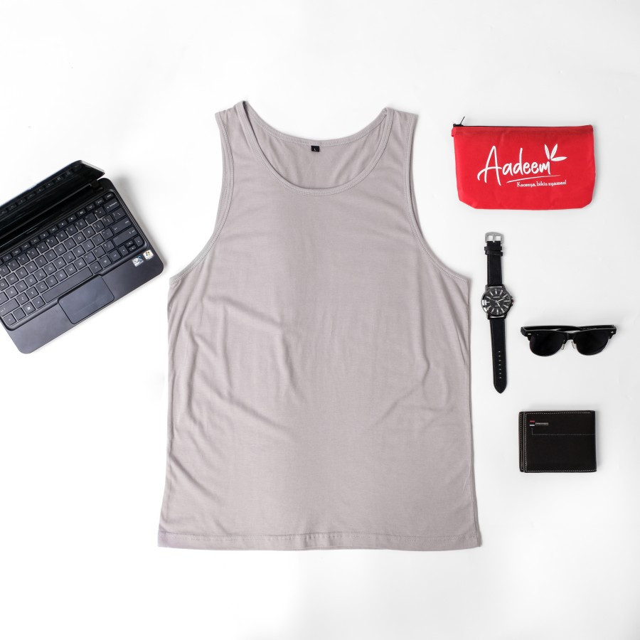 Singlet Pria Katun Bambu Aadeem/Lekbong Pria Katun Bambu/Singlet gym - Abu muda, M