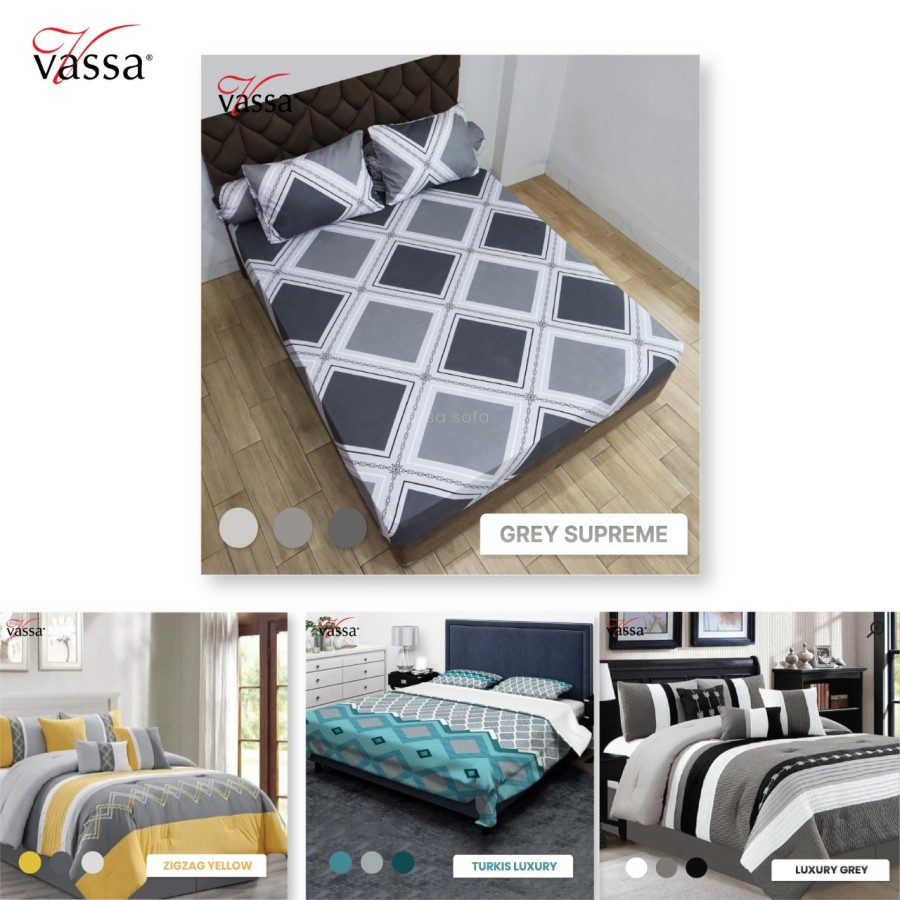 180X200 : 1 sprei sesuai ukuran + 2 sarung bantal + 2 sarung guling
